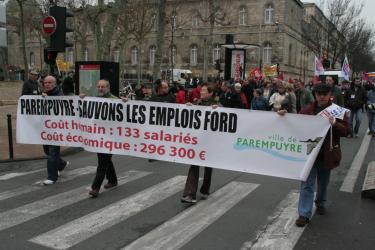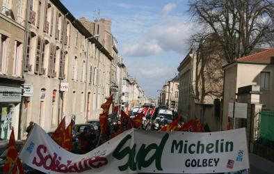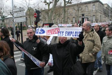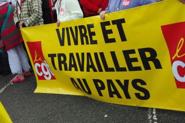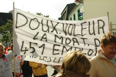 banderole de téte manif de locminé contres les suppressions d'emplois chez doux