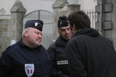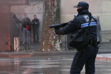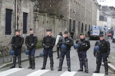 Gendarmes de l'ordre barrant une rue