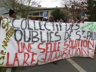 Banderole du Collectif des oubliés de Saint-Paul. Une seule solution la régularisation