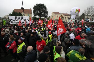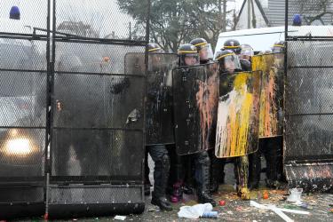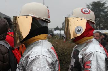 Cordon de CRS protégeant la société Goodyear