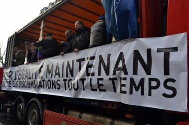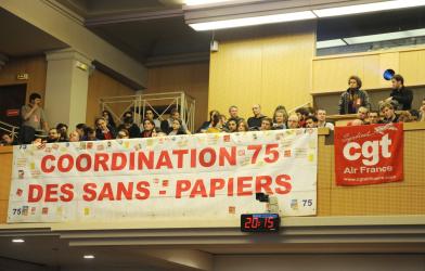 banderole de la coordination 75 des Sans Papiers