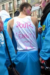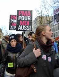 Banderole NPA jeunes : Contre les réactionnaires et la politique du gouvernement, résistance. Mariage, adoption, PMA.