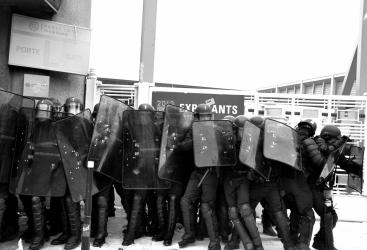 les ouvriers de l'automobile en colère face aux CRS. Face à face.