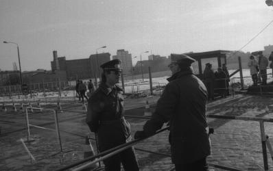 Chute du Mur de Berlin / Voppo discutant avec un policier Ouest-Allemand