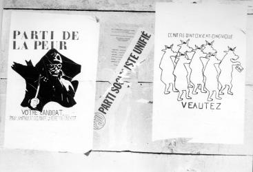 Affiches de Mai 68 : La police à l'ORTF, c'est la police chez vous. La police vous parle tous les soirs à 20H