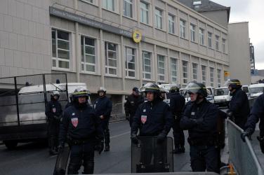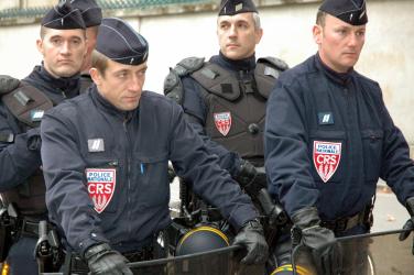 Gendarmes de l'ordre barrant une rue
