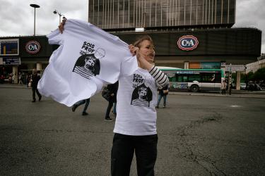 Pancarte: Deshabiller voltaire pour habiller Arnaud, Pinault, Peugeot, Dassault