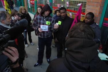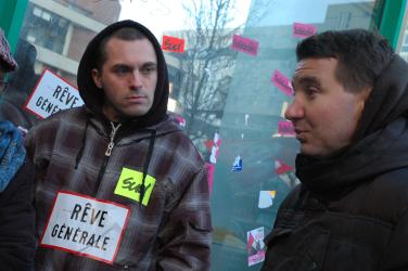 Françis Couvidat Npa tête de liste aux régionales en Essonne avec les salariés en gréve ED depuis six semaines à Evry.