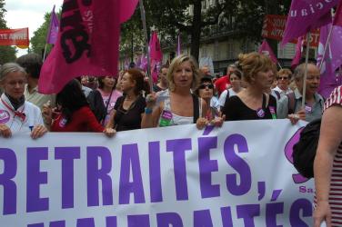 salariés Sud Santé Sociaux en grève avec banderole contre le projet de loi sur la réforme des retraites.