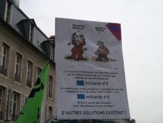 banderole Cgt Peugeot-Citroën Aulnay, les lois Balladur, Fillon, Woerth à la poubelle.