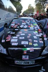Voiture recouverte d'autocollants, dont un autocollant NPA