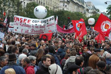 avenue des gobelins Paris, manifestation contre le projet gouvernemental de réforme des retraites.