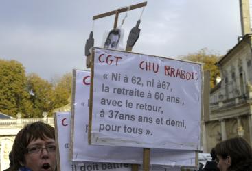 banderole Lycée C. Claudel, Pontault en manifestation contre le projet gouvernemental de réforme des retraites.