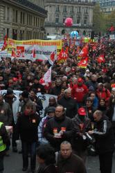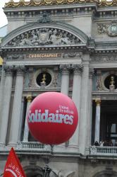 ballon Cgt de Paris en manifestation de l'Opéra au palais Brongniart siège de la Bourse Paris.