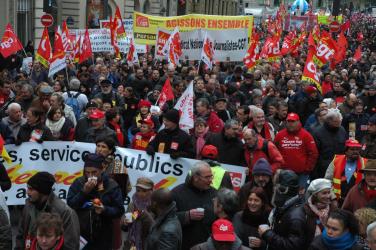 avenue des gobelins Paris manifestation contre le projet gouvernemental de réforme des retraites.