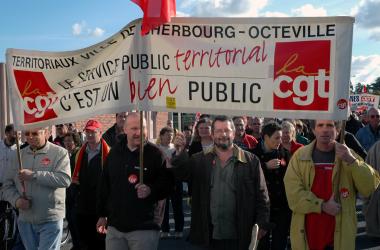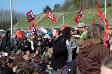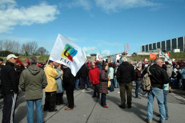 Rassemblement devant l'entrée de l'arsenal de Cherbourg