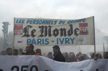 banderole du journal Le Monde Ivry sous les fumigènes place de la Rèpublique