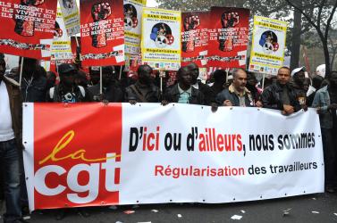 banderole Cgt d'ici ou d'ailleurs nous sommes régularisation
