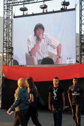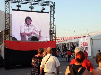 Bernard Thibault écran géant extérieur au forum social