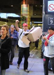 Acceuil des Ford avec Philippe POUTOU par Cheminots Train Sud et Cgt gare Montparnasse