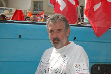 Rassemblement devant l'entrée de l'arsenal de Cherbourg