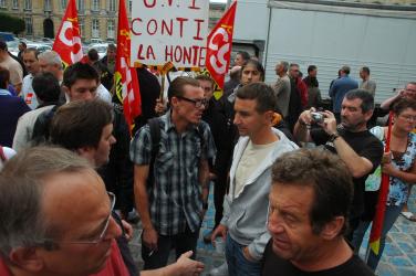 salarié Continental à Compiègne avec Olivier Besancenot.