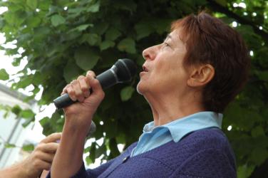 Arlette Laguiller en soutien aux Continental à Compiègne.
