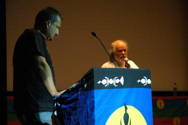 Podium à la soirée de solidarité au 7 Syndicalistes de L'USTKE en Prison à NOUMEA