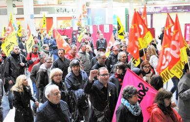 Manifestation dans le centre commercial de l'Agora Evry l'ors de la visite de M Valls