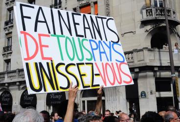 Pancarte Faineants de tous pays unissez vous
