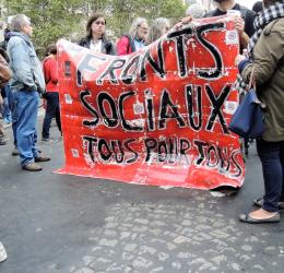 Banderole Fronts Sociaux tous pour tous à la manifestation des retraités et retraitées Paris