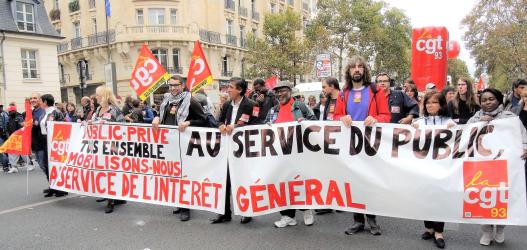Au service du Public au service de l'Interêt général Banderole Cgt 93