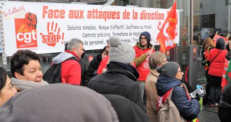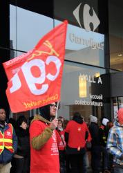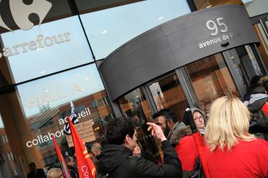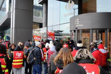 Carrefour Siège Massy mobilisation du collectif de la CGT contre le plan Bompard