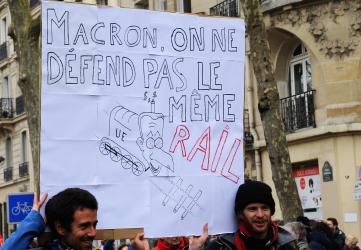 Pancarte Macron on ne défend pas le même Rail