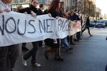 Banderole tête de cortège : nous ne paierons pas votre crise