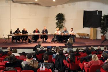 introduction au débat avec une militante du comité Npa du 11em arondissement Paris et Alain Krivine.