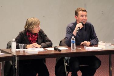 Florence Aubenas, Gérard Mordillat (romancier et cinéaste) et Pascale Montel (ouvrière chez YKK)