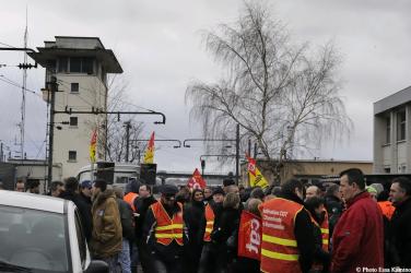 Christine Poupin, tête de Liste NPA Région Haute-Normandie avec les Cheminots