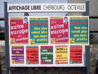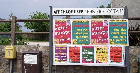 drapeau NPA avec les affiches de la compagne dans la région PACA