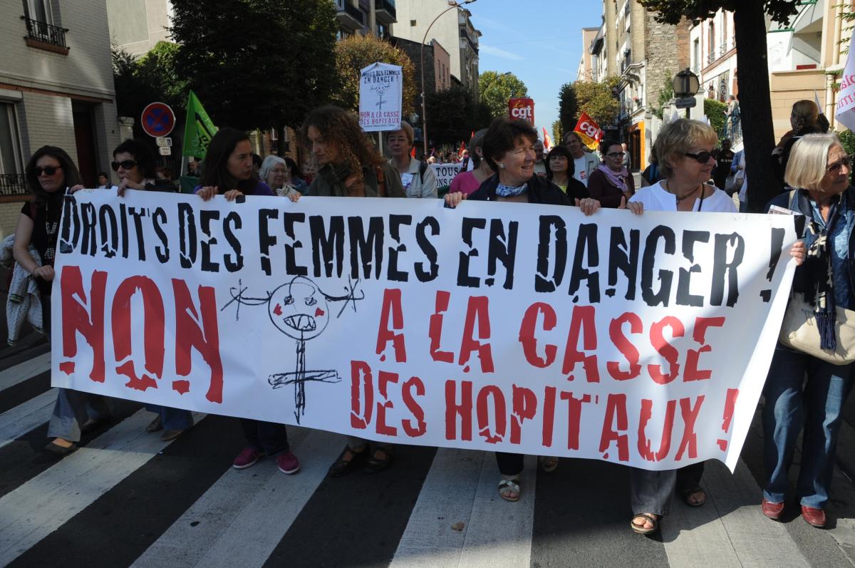 Banderole Droits des Femmes en danger! NON à la casse des Hôpitaux!