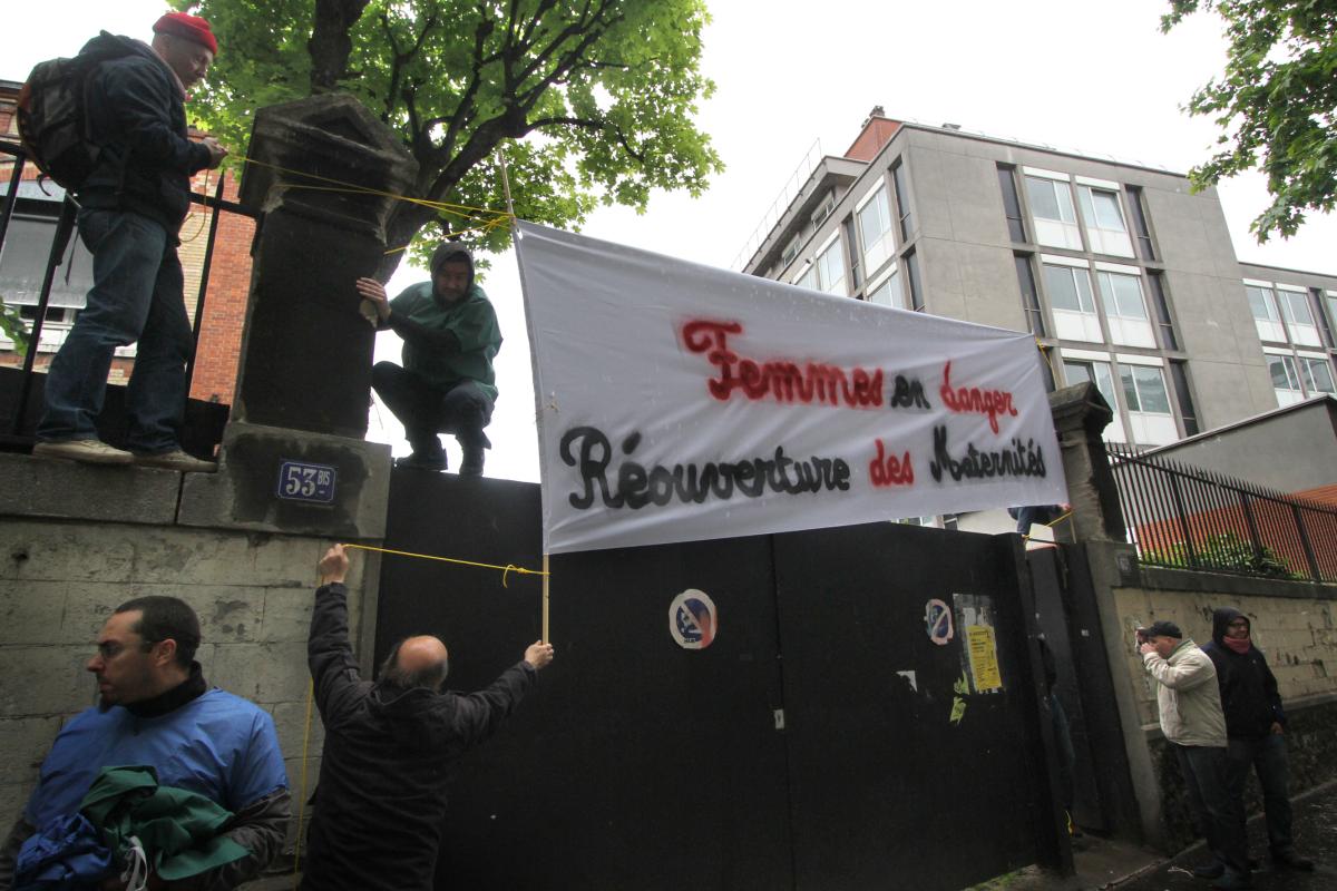 Pose de la banderole Femmes en danger Ouverture des maternités