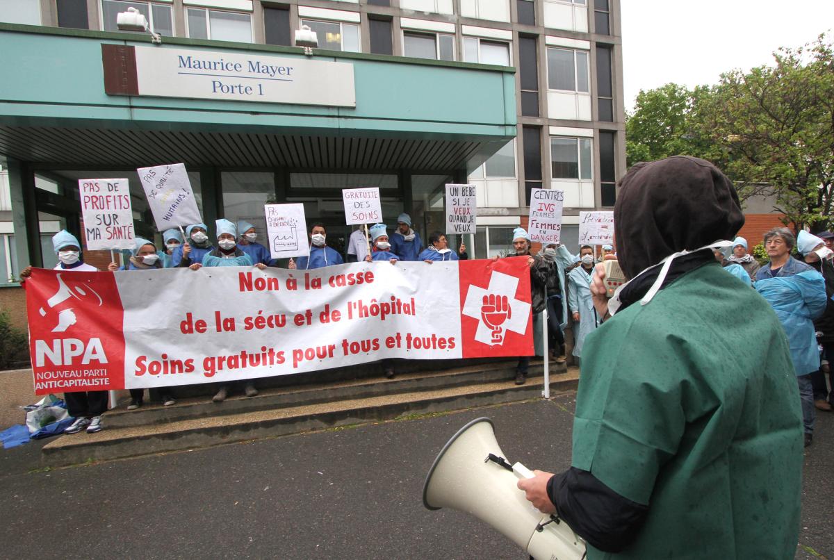 Samedi 10 mai 2014, Des militantEs du NPA avec Olivier Besancenot, tête de liste aux Européennes en Ile de France, sont venus manifester dans l'hôpital Saint-Antoine contre la fermeture de la maternité et du centre IVG, contre la politique d'austérité qui s'applique dans la santé.