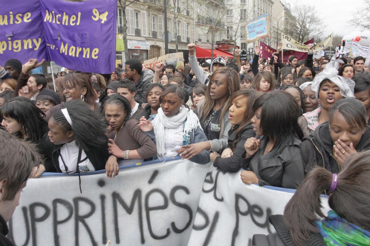 le 18 mars 2008 manifestation enseignante et lycéenne à Paris de la république à la bastille contre les suppressions de postes, le Bac Pro en 3 ans et le rapport Pochard. Un petit air des manif du CPE côté lycéens. PARIS/2008/03/18/JMB;