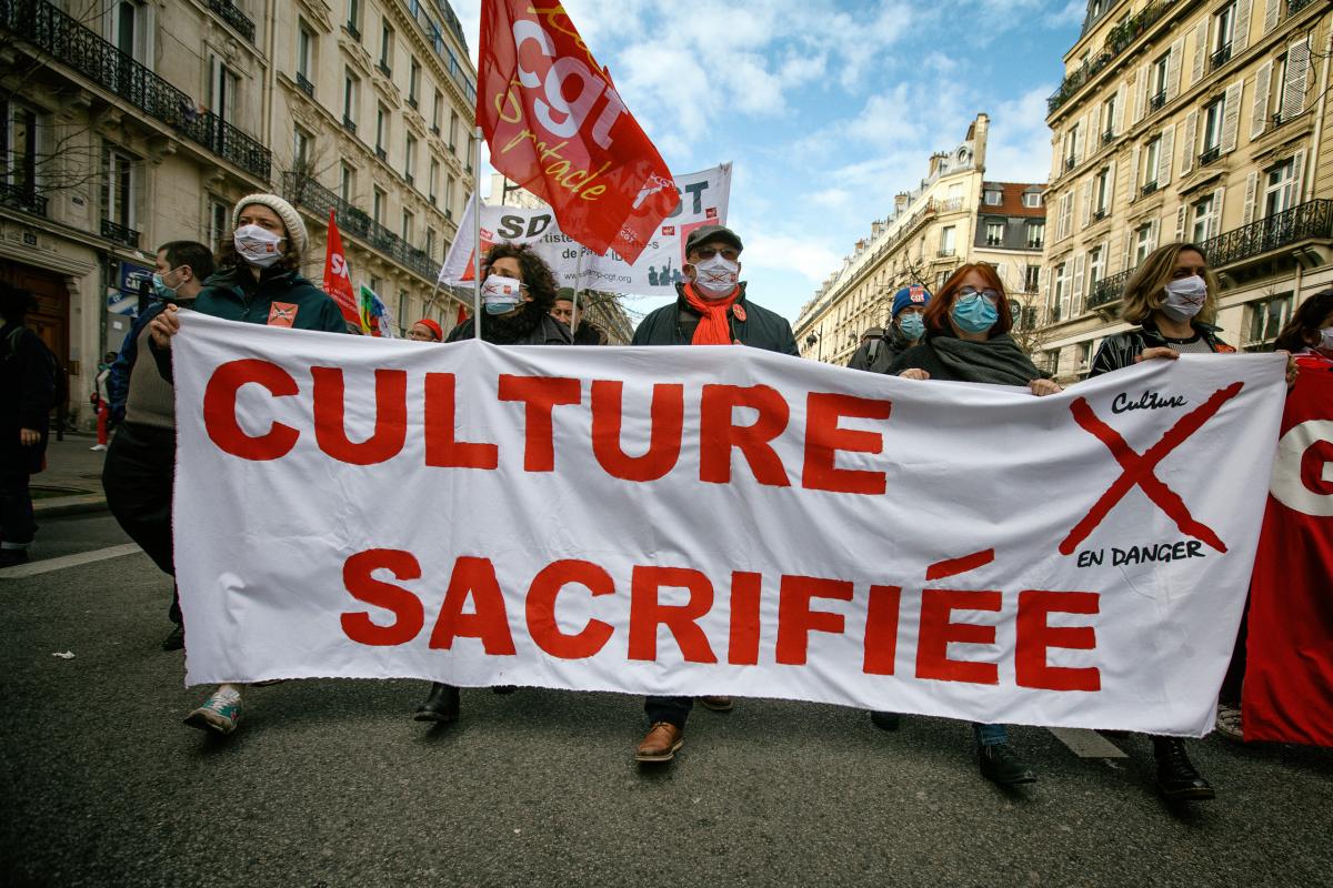 CGT Spectacles parade. Trade union demonstration against governement policy, Paris, February 4 2021. Photograph by Martin Noda / Hans Lucas