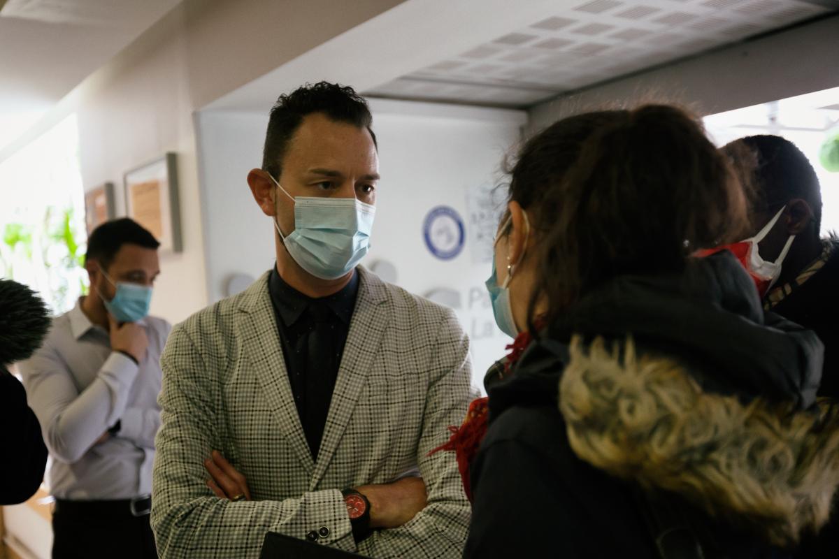 France, Paris, 2021-03-15. Strikers from the ibis Batignoles hotel occupy the lobby of the Ibis Paris la Defense hotel. The hotel manager listens with great kindness to the requests of the strikers. Photograph by Martin Noda / Hans Lucas