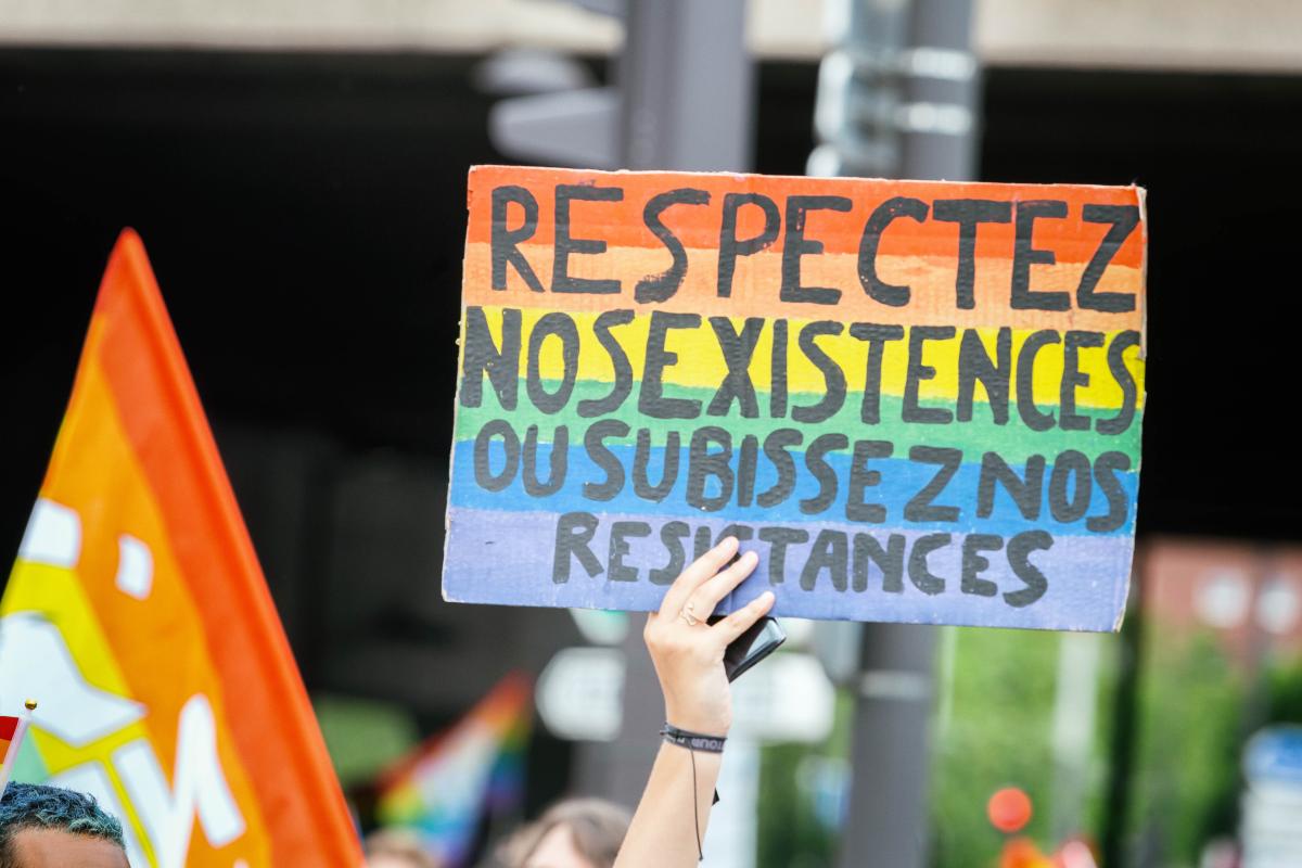 France, Paris, 2021-06-26. Une pancarte avec le slogan "Respectez nos existences ou subissez nos resistances". Marche des fiertes. Photographie de Martin Noda / Hans Lucas