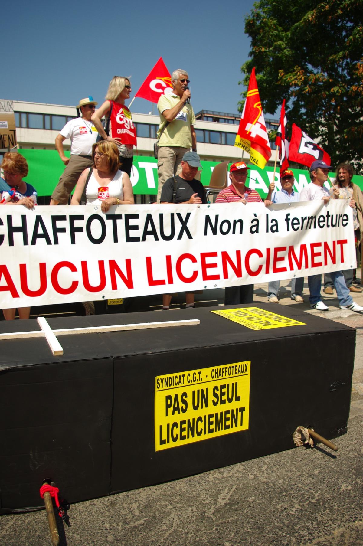 manifestation de l'usine de Chaffoteaux à la prefecture des cotes d'armor contre le plan de licenciement allant de 207 à 149 salariés sur une usine de 250. L'usine comptait au départ 2000 travailleurs et depuis le rachat en 2000 par le groupe MTS l'on assiste au démantèlement du site.Aujourd'hui l'actionnaire fait du chantagé: baisse des charges ou délocalisation