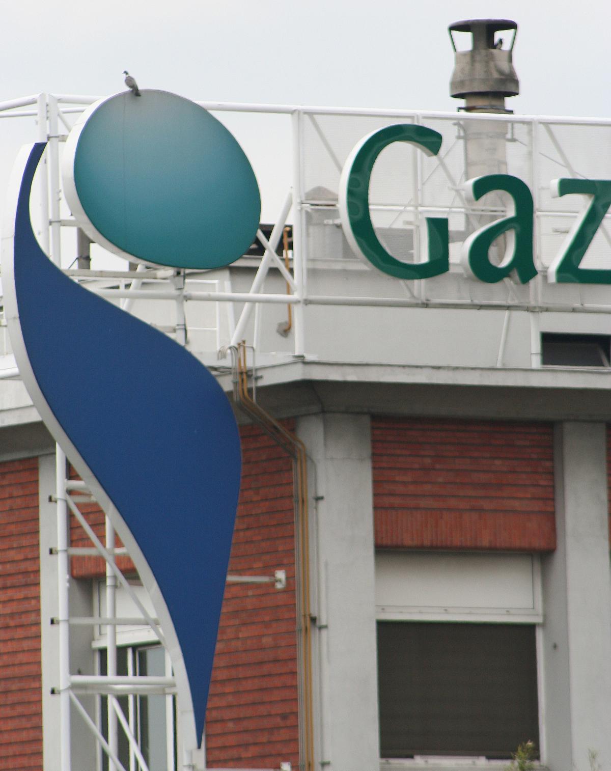les logos du centre de recherche du gaz de france à saint denis vus du grand stade 20 juin 2006.