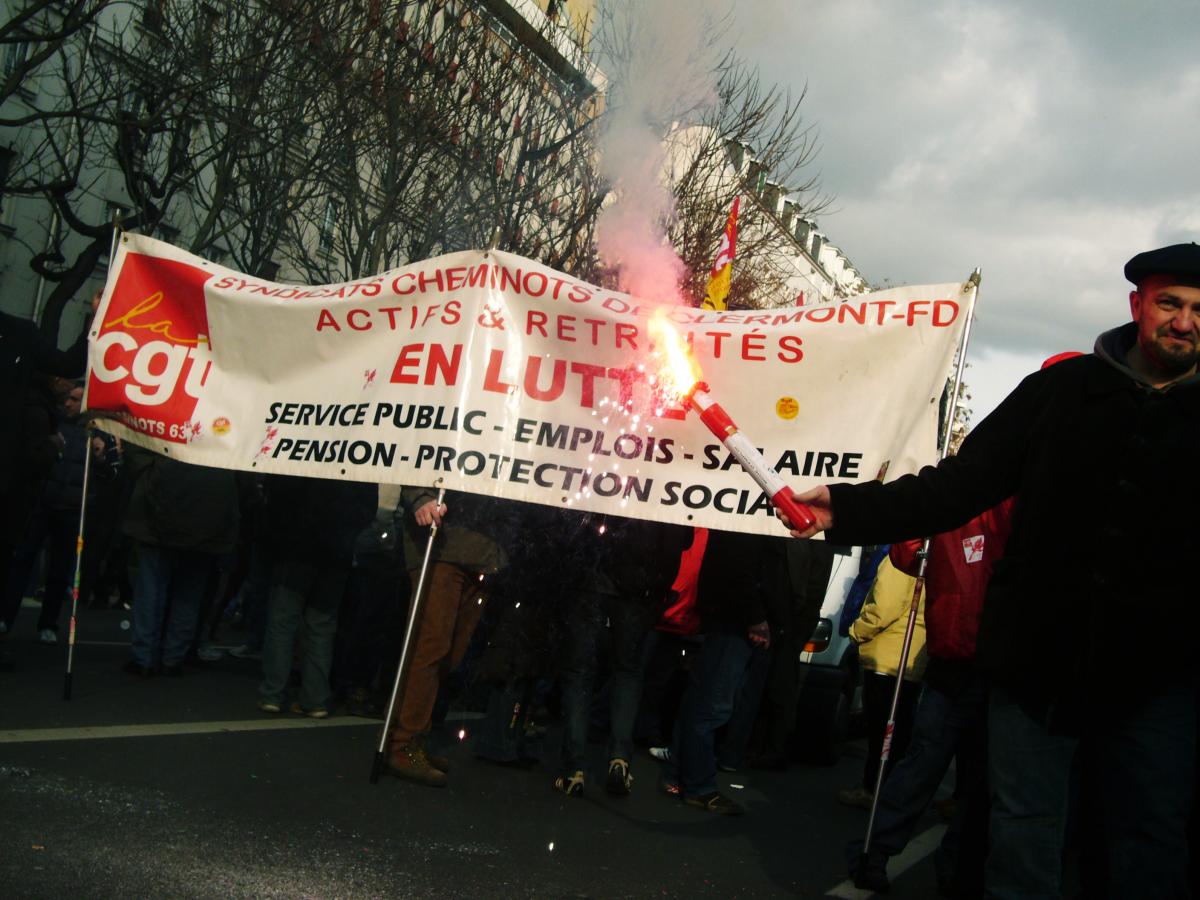 22 janvier 2008. Manifestation nationale à l'appel des fédérations de cheminots CGT, CFDT, CFTC, CGC et UNSA ainsi que des fédérations énergie et RATP CGT. (16.000 selon la police, 50.000 selon la CGT) « Pour les régimes spéciaux, et peser sur les négociations encore en cours » ph: Babar