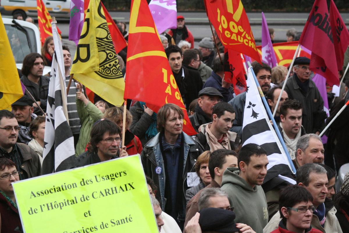 Cortège de manifestants à Quimper contre la casse des Hôpitaux publics Finistèriens.